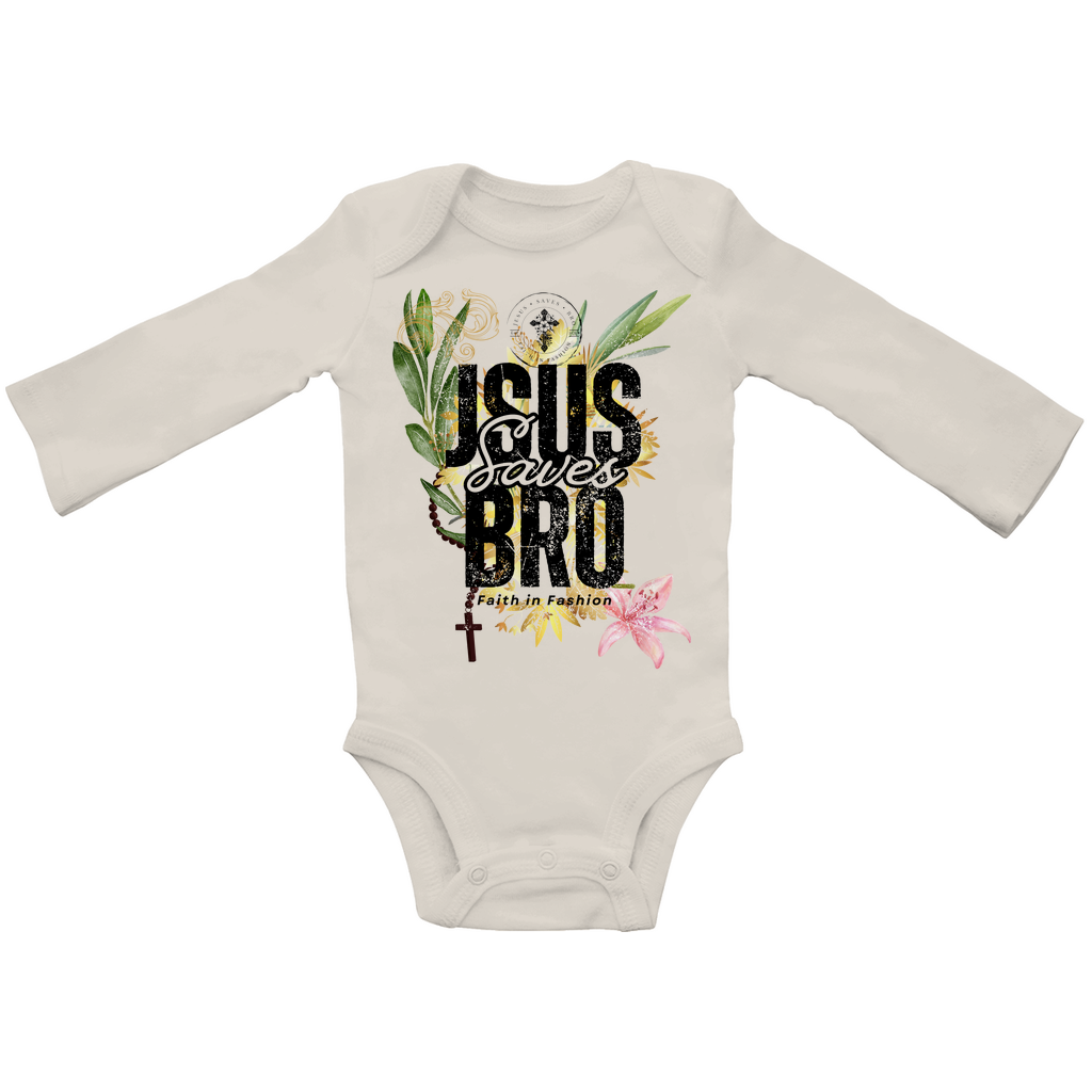 JESUS SAVES BRO - FLOWERS & CHAIN - BABY BODYSUIT LONGSLEEVE